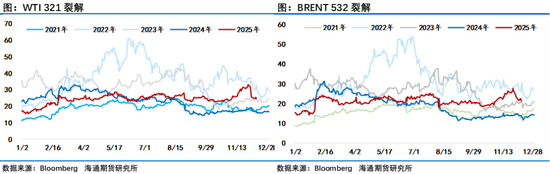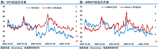 油价周五尾盘出现了快速回落行情匆匆结束了11月的交易,周五美国芝商所(CME)因技术问题导致交易暂停大半天,让原本因感恩节假期流动性不足的盘面更容易出现大波动,而周末美国特朗普的特使威特科夫将与赴美的乌克兰代表团举行会谈,市场担心出现意外情况,资金有离场观望意愿。最终在经过了一个月的震荡拉锯走势后,WTI 1月原油期货收报58.55美元/桶,11月份累计下跌超过3.38%。布伦特1月原油期货收报63.20美元/桶,11月份累跌超2.42%,至此油价已经连续第四个月收跌。这期间月差先跌后涨,成品油裂解差则是先涨后跌,反映出则后期间在对俄制裁和美国推动俄乌和平给市场带来的影响导致投资者观点的摇摆。